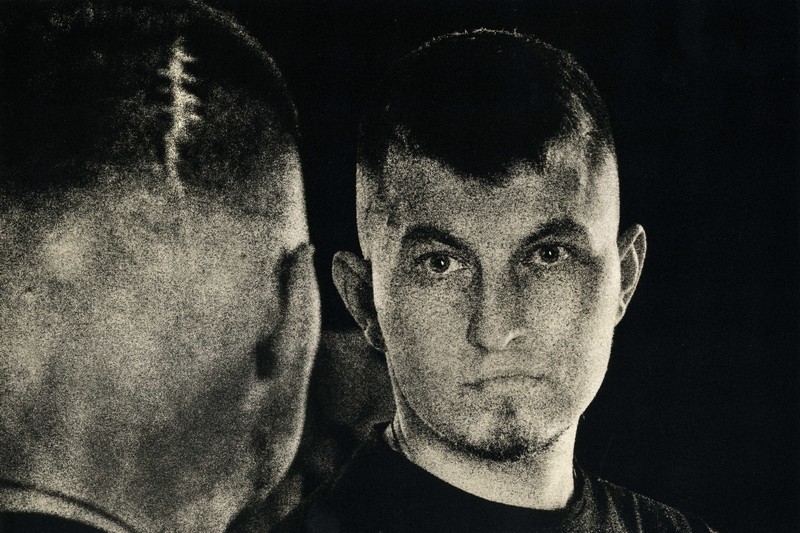 Плівка і ручний друк додають зображенню матеріальність і напругу.